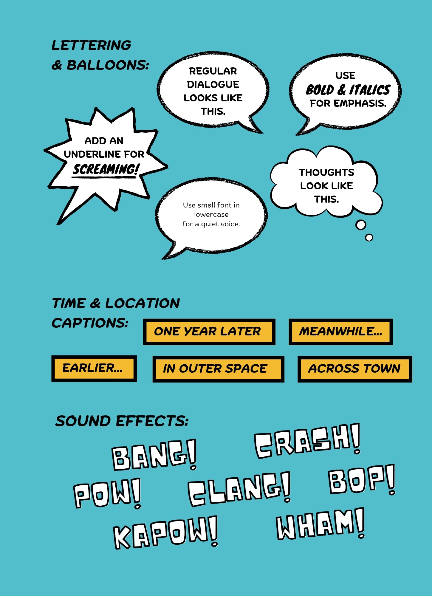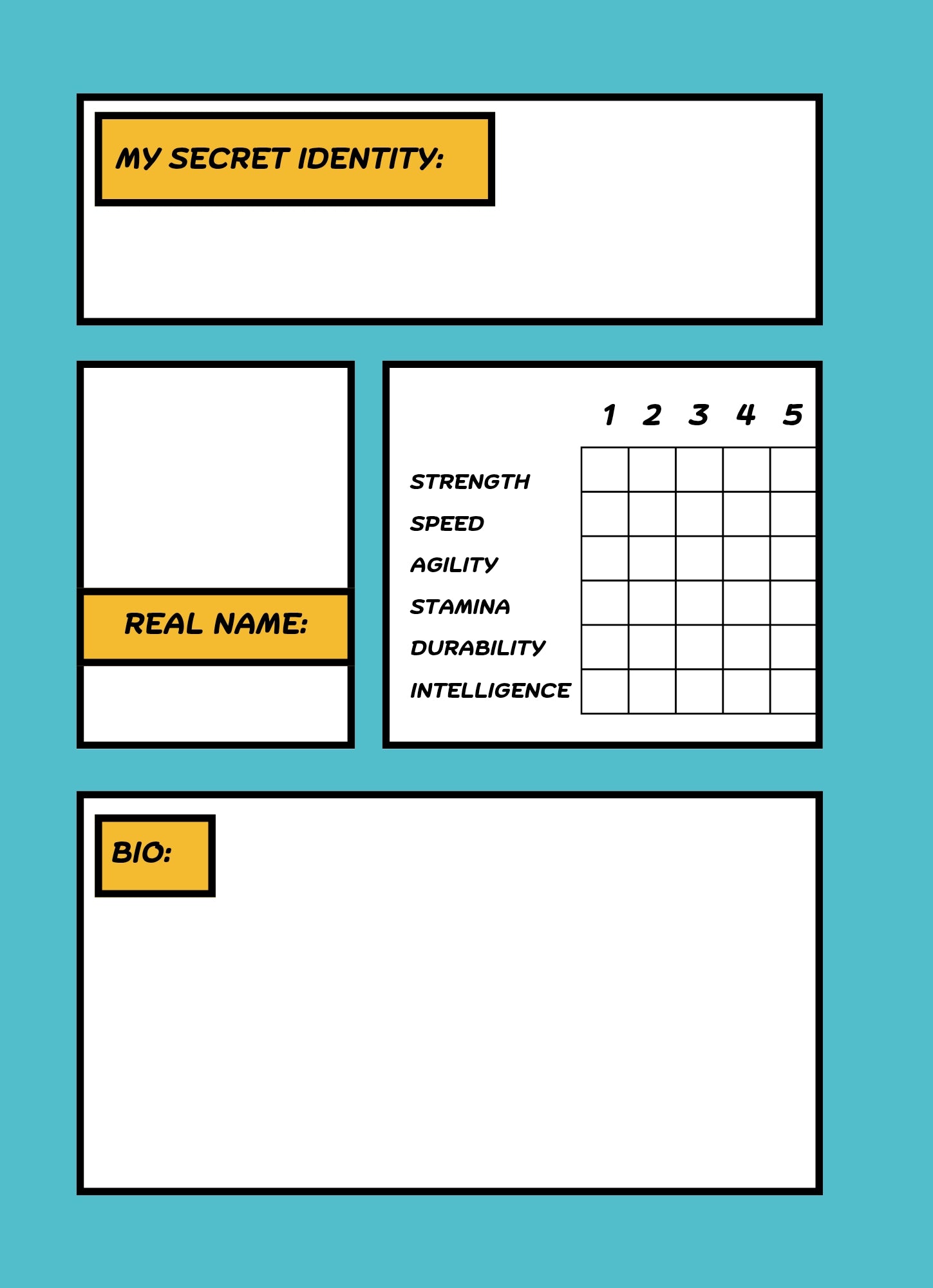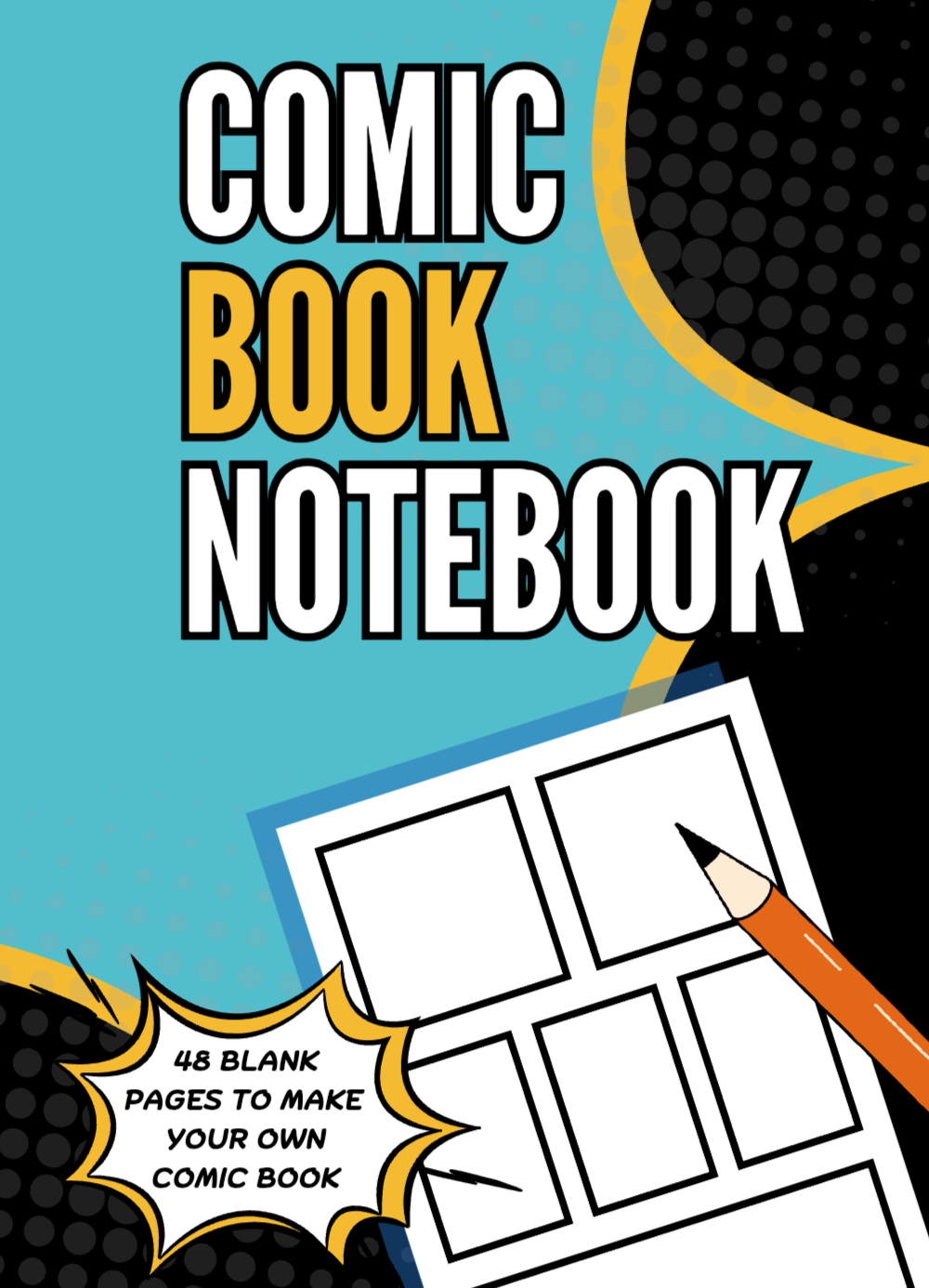 48 blank pages to with pre-drawn panels to make your own unique comic book.
