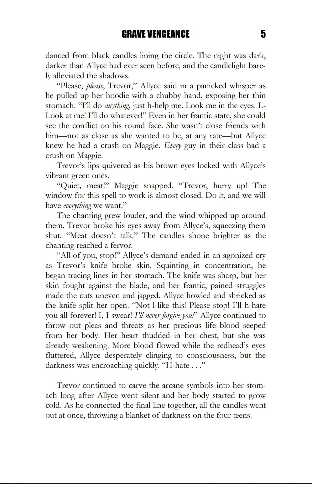 Allyce thought when the most popular kids in school asked her to be their friend, she was finally going to come into their own. And then they murdered her.